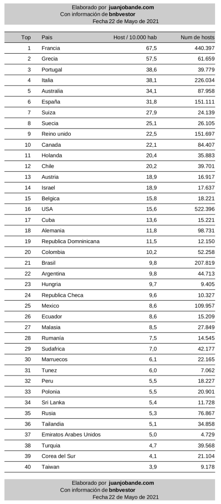 Son aquellos en los que mayor porcentaje de la población es anfitrión de Airbnb.